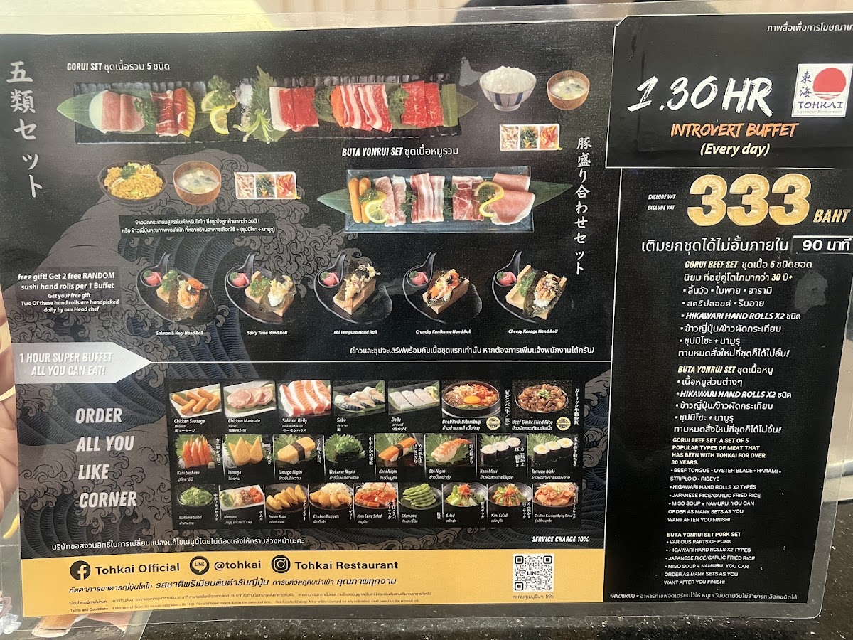 Welcome to Tohkai Yakiniku located on the fifth floor of Terminal 21, Bangkok—a must-visit for lovers of authentic Japanese BBQ and sushi. The menu offers a delightful fusion of flavors, boasting both a la carte and premium buffet options. Customer reviews highlight the variety and quality of dishes, especially the fresh sashimi and marinated beef.
